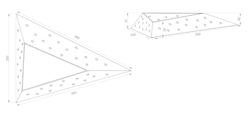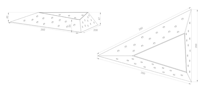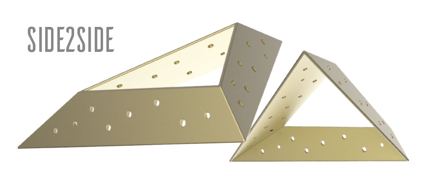 Due reggimensola simmetrici (uno sinistro e uno destro) possono essere posizionati sotto o sopra, adattandosi a mensole di diversa misura (profondità 120, 160 e 240 mm).