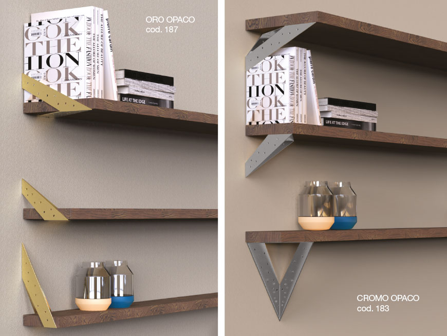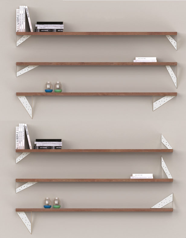 Due o più reggimensola uguali (sinistro o destro) possono essere posizionati sotto o sopra, adattandosi a mensole di diversa